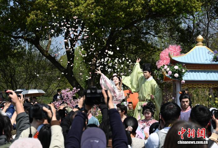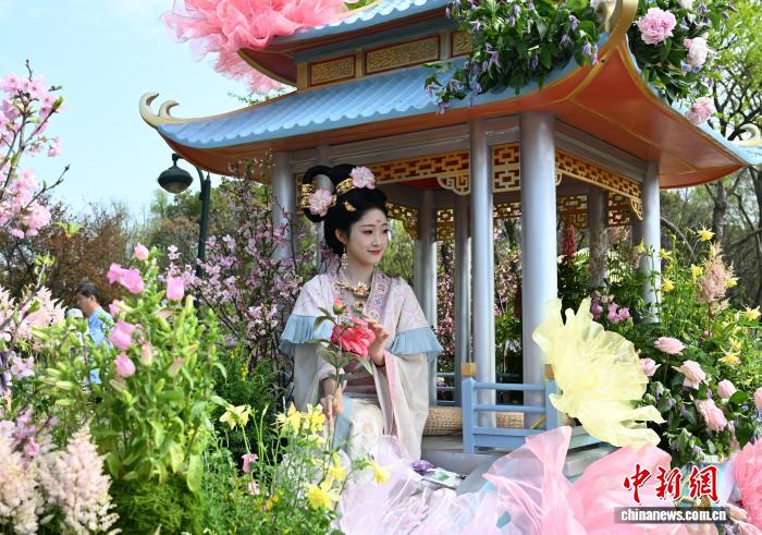 3月29日,“花神”等人巡回闪现。当日,2026年西溪花晨举动正在浙江杭州西溪邦家干天花园落幕,105栽花卉、远8万盆花株正在干天通达,“10两花神”战汉服“共袍”正在干天巡礼,兼具玩赏性战文明性的沉醉式宋韵秋日嘉会吸收游人。中新社记者 王刚刚 摄