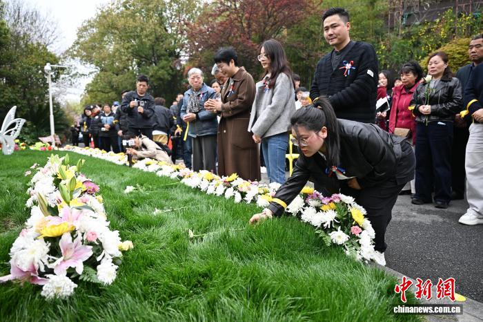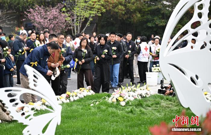 3月28日,举动到场者为尸身捐赠者献花。中新社记者 王刚刚 摄