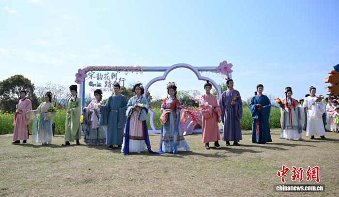 3月29日,“10两花神”散中明相。当日,2026年西溪花晨举动正在浙江杭州西溪邦家干天花园落幕,105栽花卉、远8万盆花株正在干天通达,“10两花神”战汉服“共袍”正在干天巡回,兼具鉴赏性战文明性的沉醉式宋韵秋日嘉会吸收游人。中新社记者 王刚刚 摄